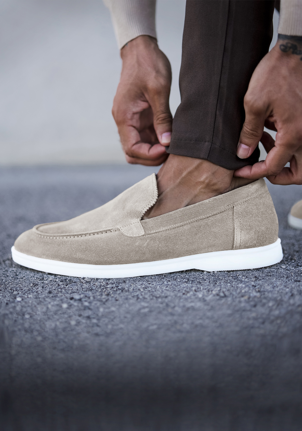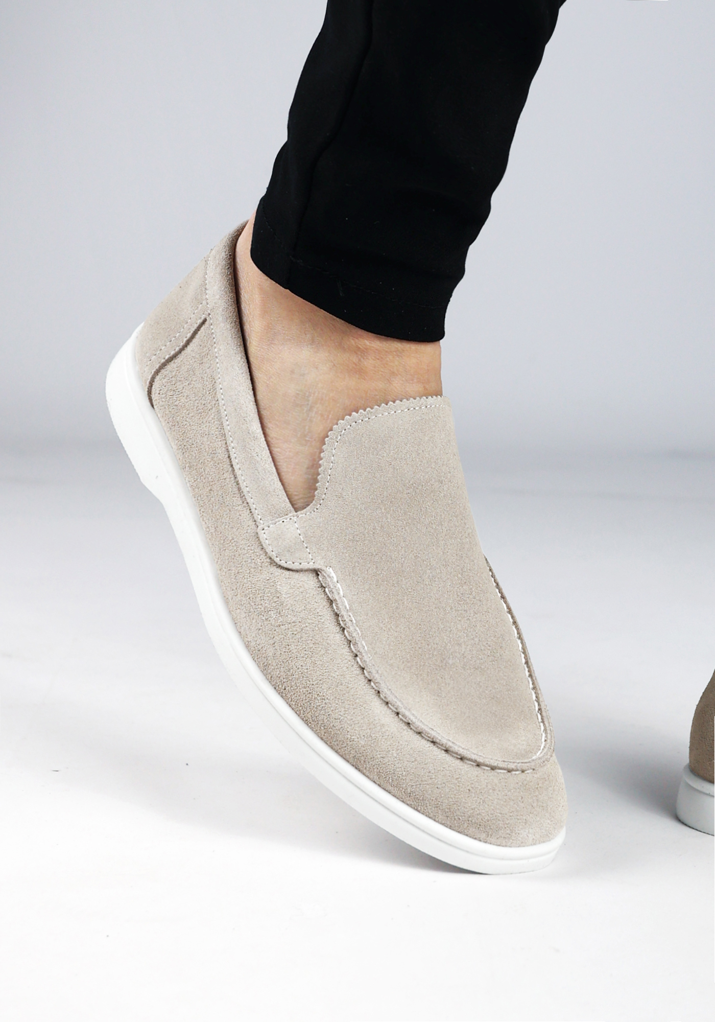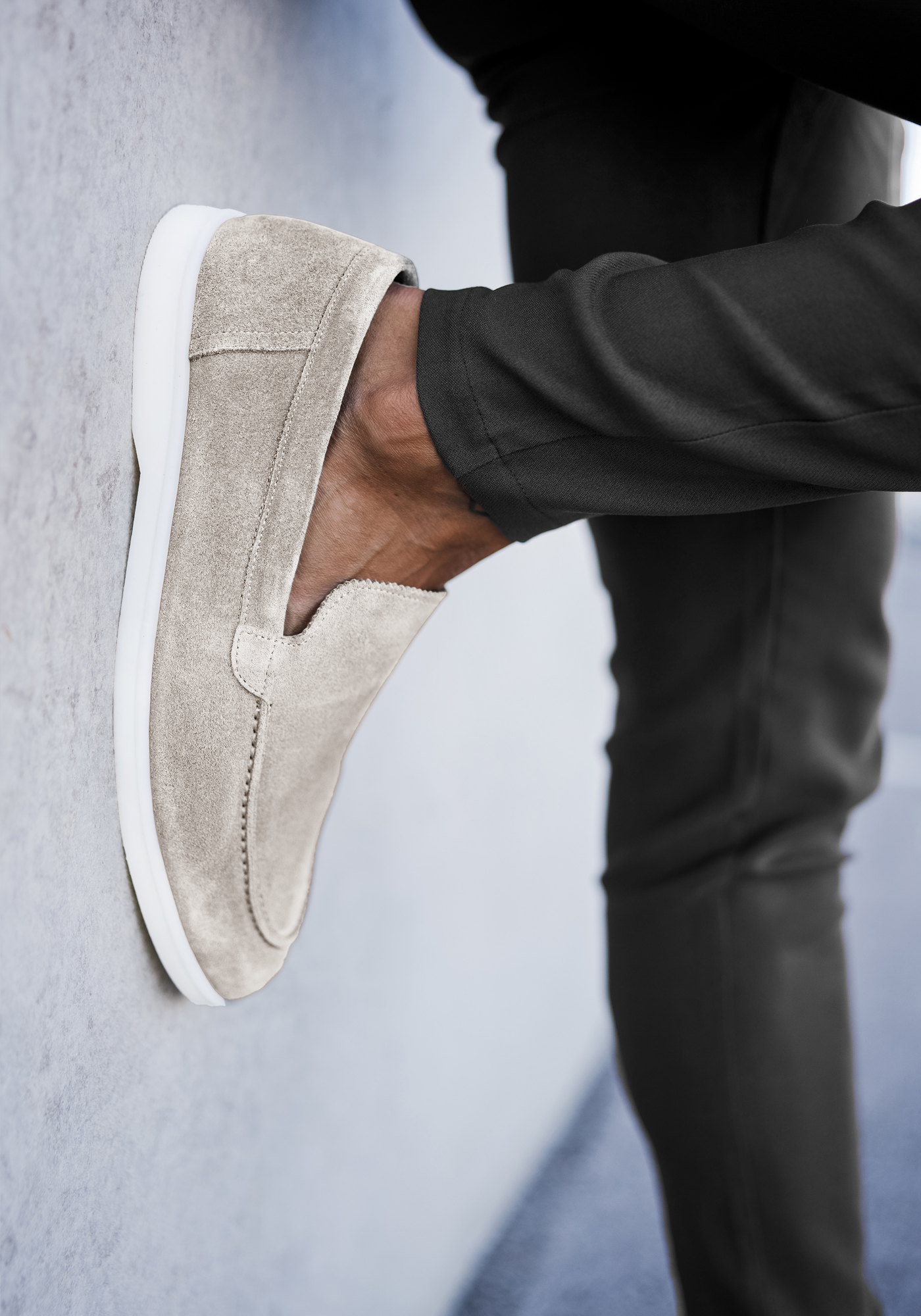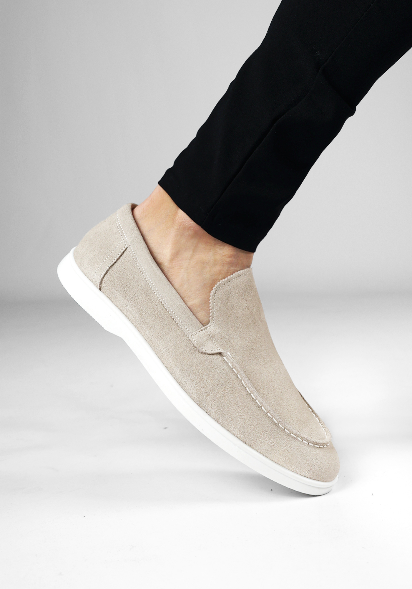 Model heeft normaal Nike maat 44,5 en draagt de loafer in maat 44.