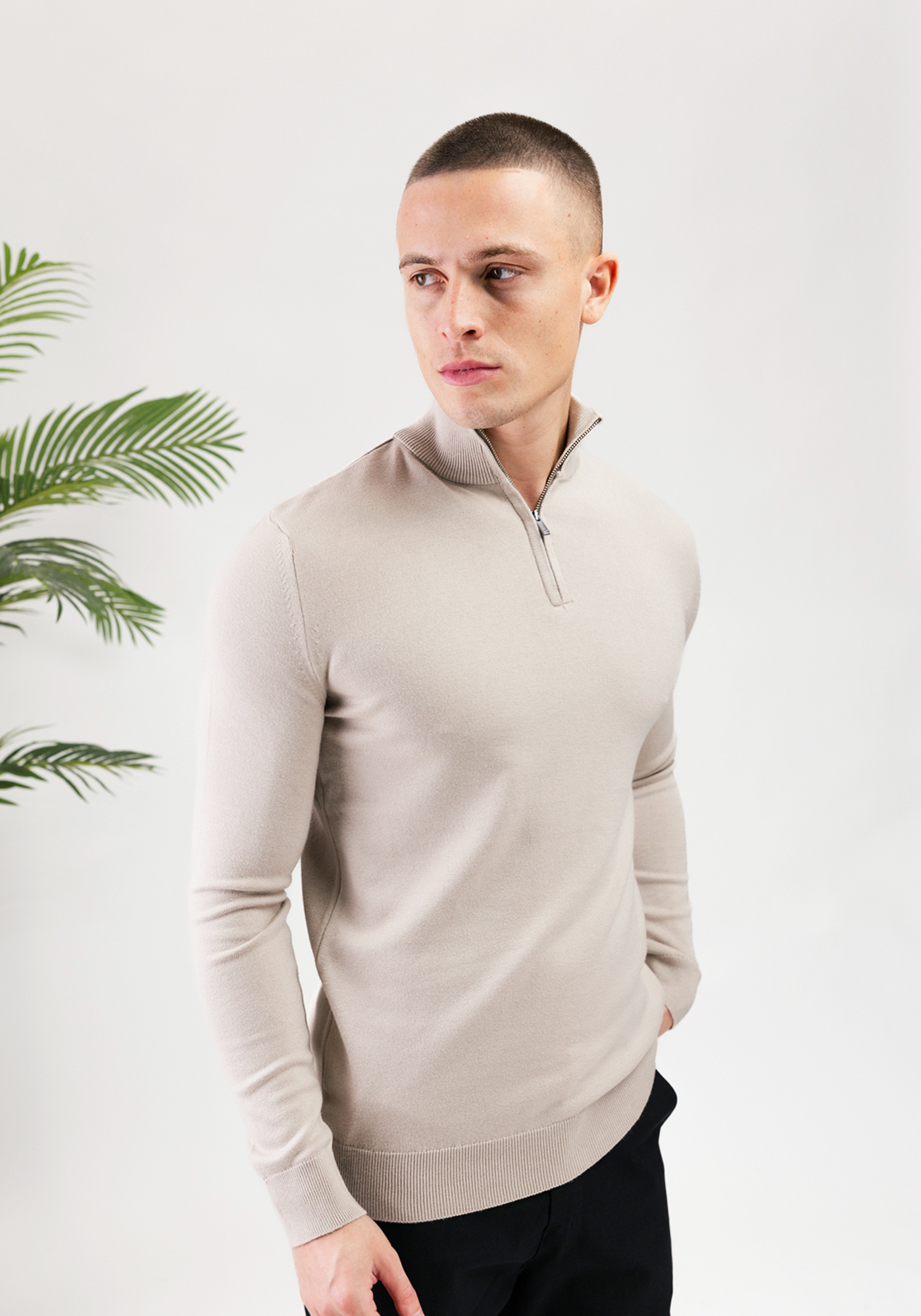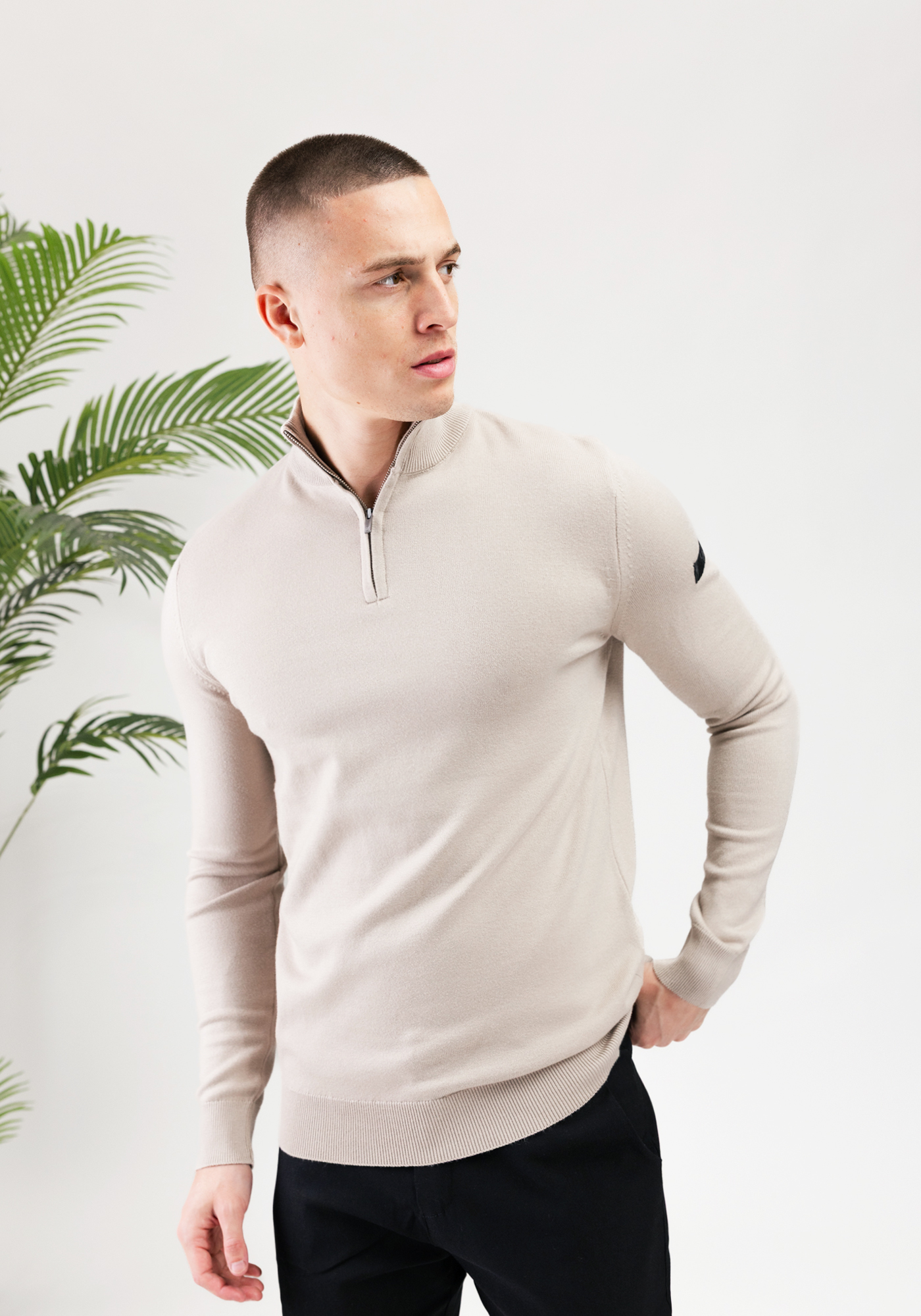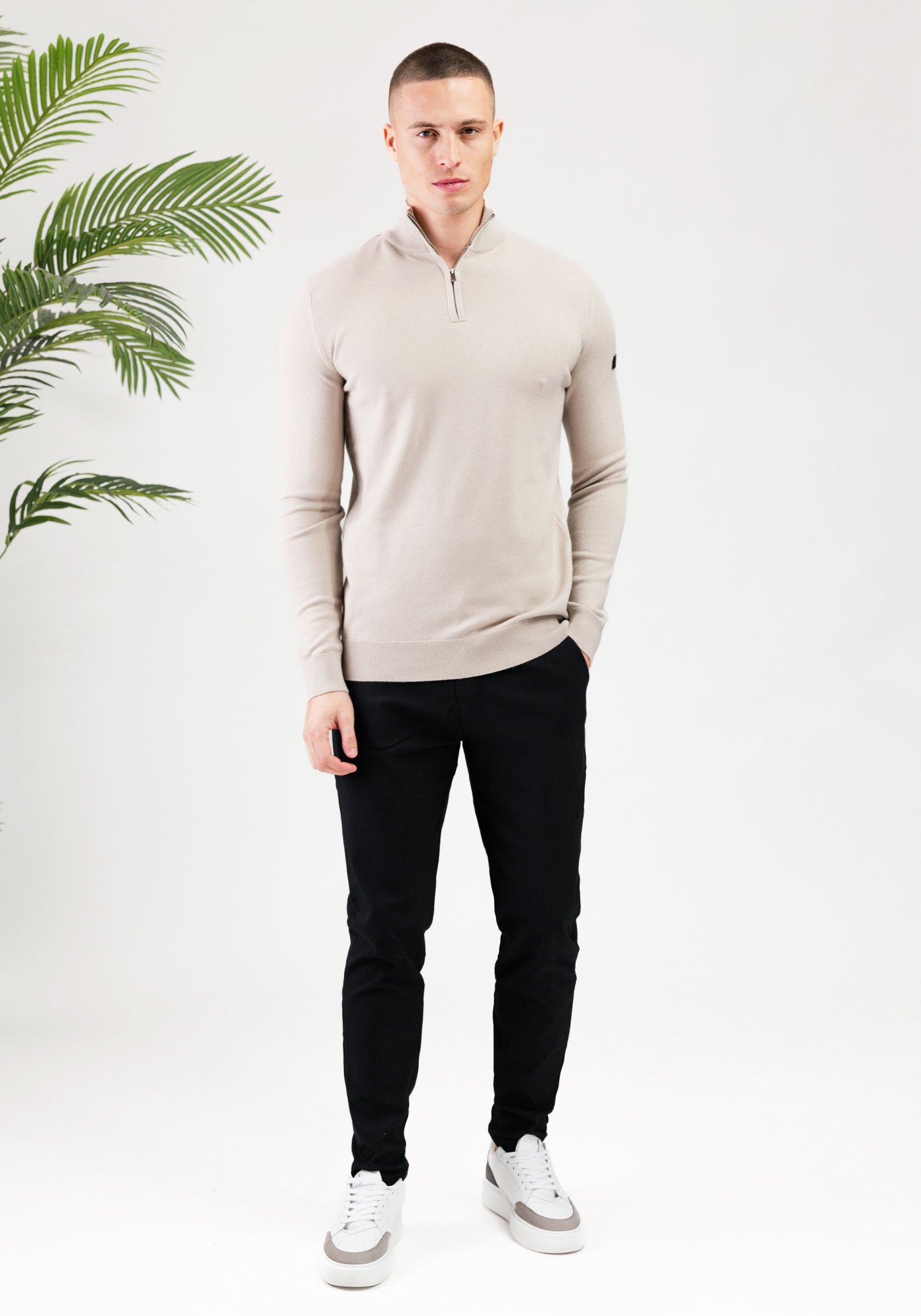 MALELIONS Knitted Quarter Zip – Sand